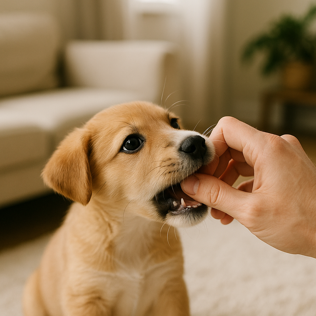 A kölyökkutyák számára rendkívül fontos megtanulni a harapás erejének kontrollját, az úgynevezett harapásgátlást. Ha a kölyök túl erősen harap, adj ki egy hangos "jaj" hangot, mintha fájna, majd azonnal szüntesd meg a játékot. Ezzel megtanítod neki, hogy az erős harapás következményekkel jár, és idővel finomabb lesz a szájhasználata. Ha szükséges, alkalmazz rövid játékmegszakítást (time-out) a tanulás megerősítésére.