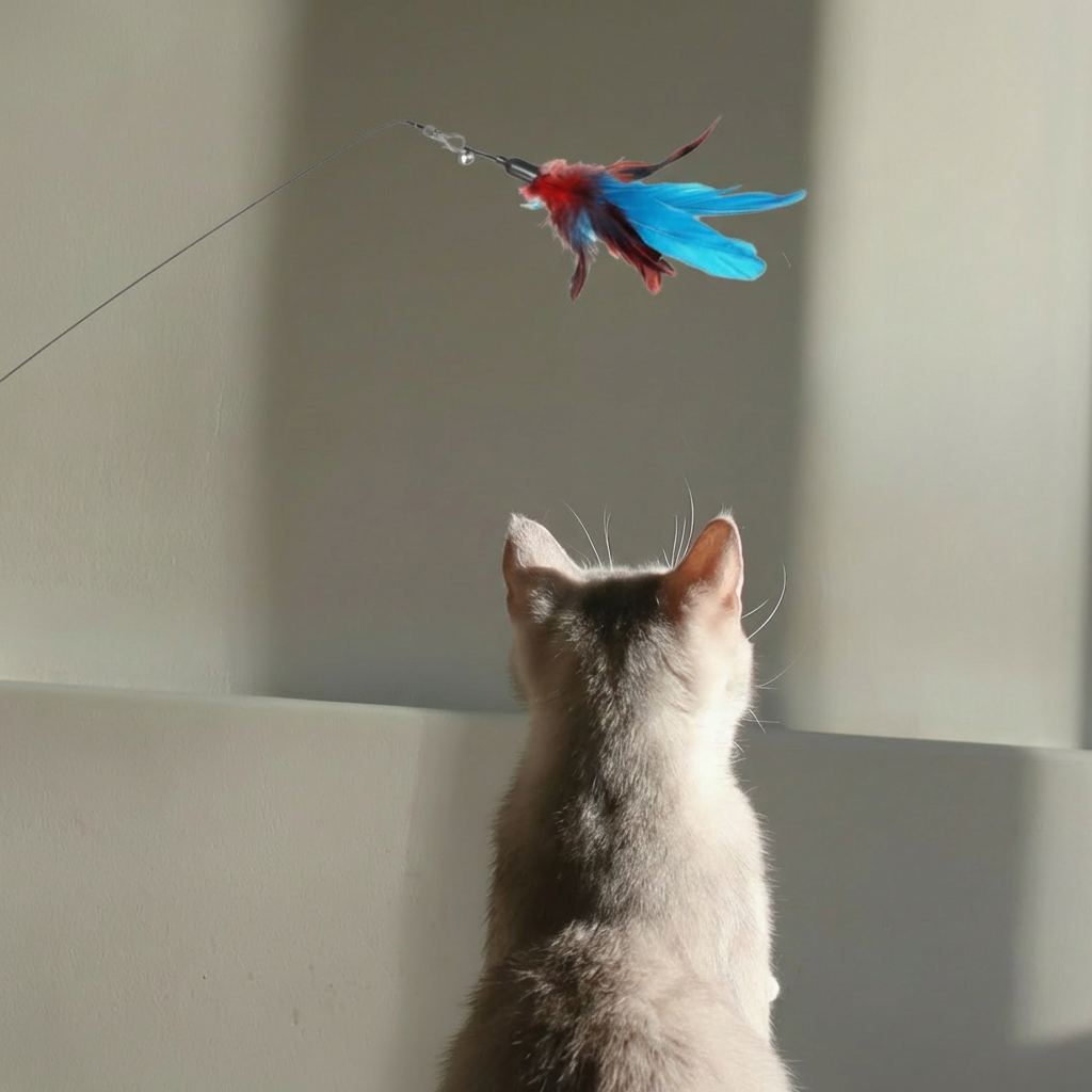 A macskák ösztönösen reagálnak a madárszerű mozgásra és a csapkodó tollakra. A legtöbb cica azonnal érdeklődni kezd, de ha a tiéd kicsit félénkebb, adj neki időt a felfedezésre. Érdemes lehet először csak a földre tenni a tollat, hadd szagolgassa meg, és csak utána kezdj el lassan mozgatni vele.