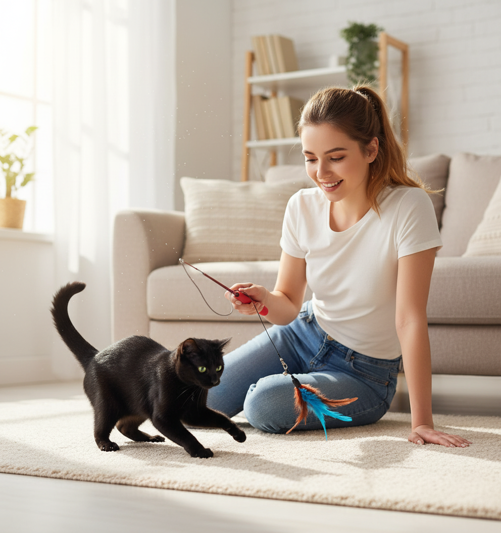 Ez a játék nem csak cicádnak szól: neked is. A közös játékidő erősíti köztetek a kötődést, és neked is jó érzés lesz látni, ahogy a szeme felcsillan, amikor előveszed a pálcát. A rendszeres játék nemcsak az ő egészségét szolgálja, hanem a ti kapcsolatotokat is. A napi néhány perc közös játék erősíti a bizalmat és mélyíti a kapcsolatotokat.