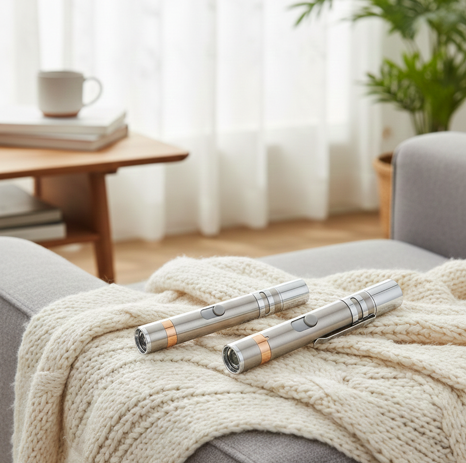 A Luminoo prémium fém házban készül, nem műanyag. Kompakt méretének köszönhetően (mint egy toll) bárhová magaddal viheted, és bírja a mindennapi használatot. Az USB töltésnek hála nem kell elemeket cserélgetned, ami hosszú távon pénztárcabarát megoldás is egyben.