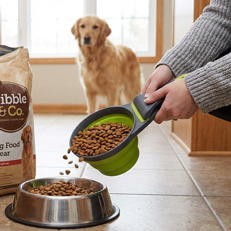 Az összecsukható kanál kb. 237 ml űrtartalmú, így segít mindig ugyanannyi tápot vagy vizet adni a kedvencednek, ami óriási segítség ha figyelned kell a súlyára vagy állatorvos által javasolt mennyiséget követsz. Nem kell többé becslésekre hagyatkoznod, elég megtölteni a kanalat és kész az ideális porció.