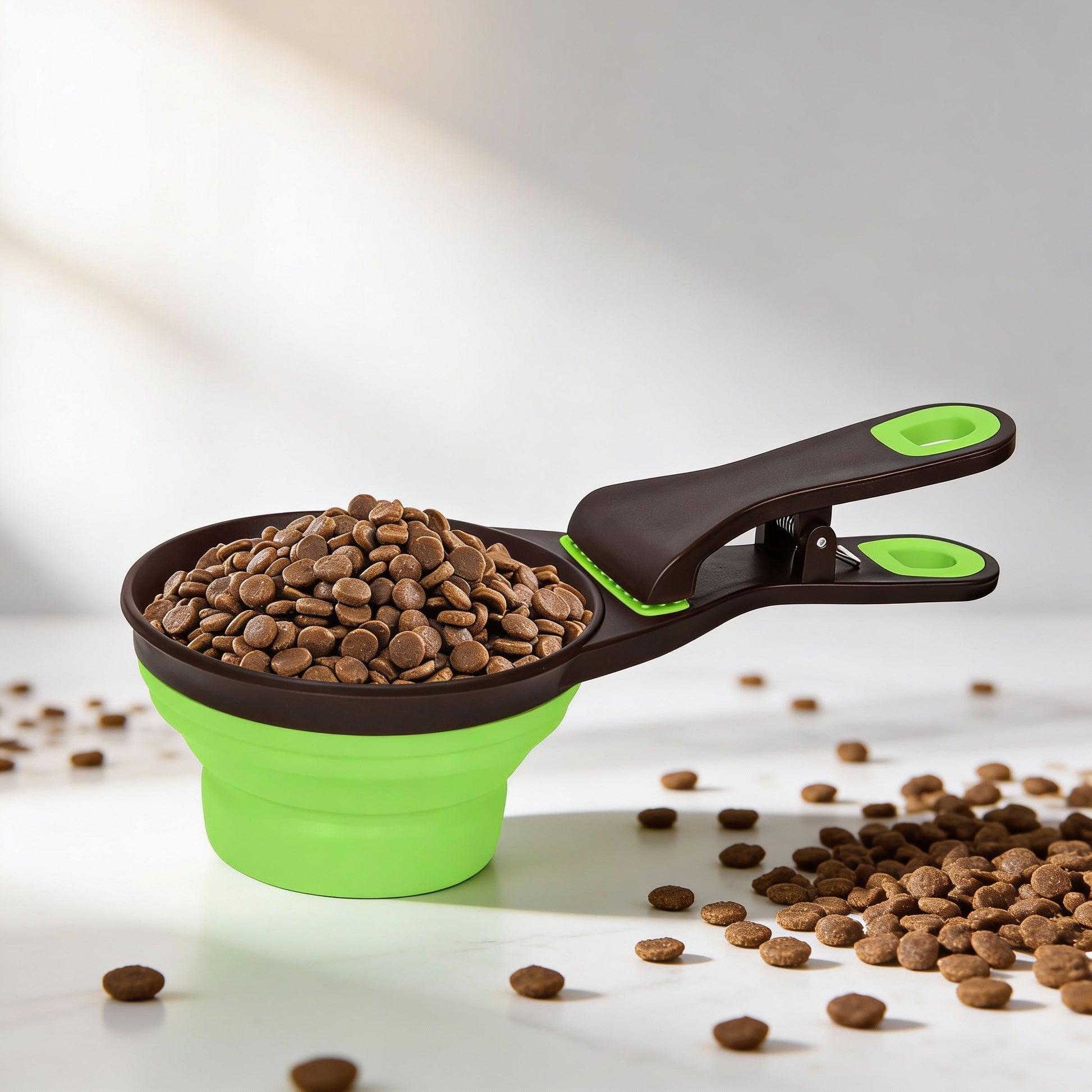 Ez a kanál nemcsak adagol: a beépített csipesszel lezárhatod a kutyatáp zacskót, összecsukva fedélként használhatod a konzerves dobozon, sőt utazáskor még víz vagy snack kínálására is alkalmas. Minden, amire szükséged van, egyetlen helyen.