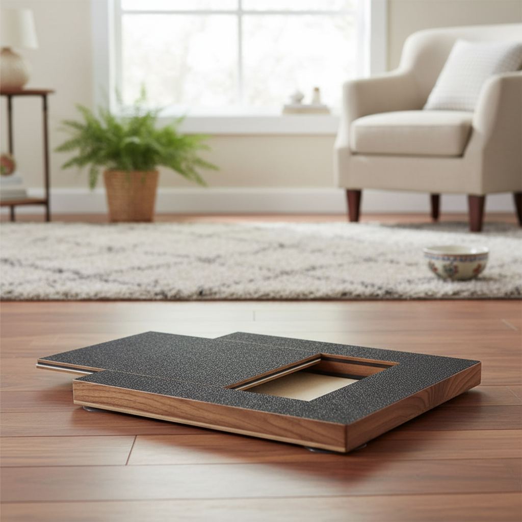 A stabil faállvány és a csúszásgátló kialakítás gondoskodik róla, hogy a deszka ne csússzon el a lelkes kaparások alatt. A modern, fa-fekete dizájn bármelyik nappaliban jól mutat, használat után pedig egyszerűen összecsukható és elrakható.