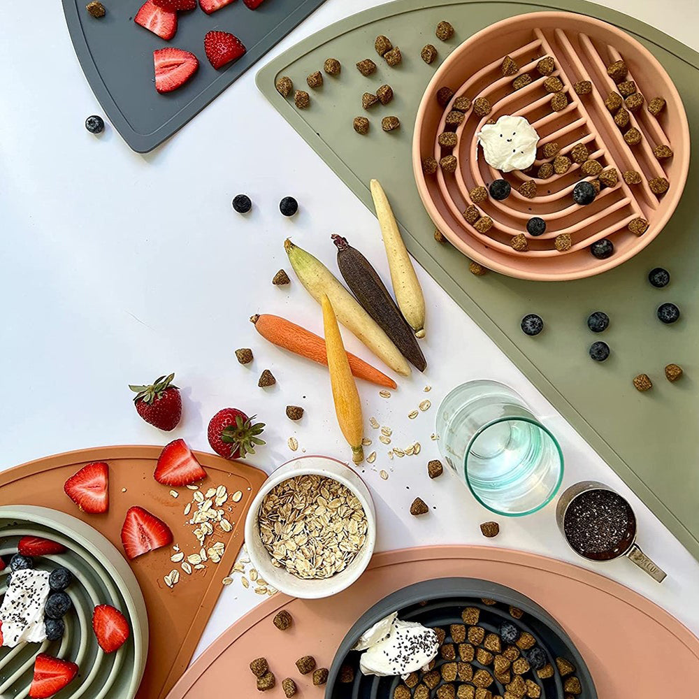 A Slowlee-t nem csak etetőtálként, hanem nyalószőnyegnek is használhatod. Kenj rá egy kis mogyoróvajat, joghurtot vagy pástétomot és máris kész a tökéletes foglalkoztató. A bordázat között lassan nyalogatva kedvenced megnyugszik és leköti magát. A nyalogatás önmagában is megnyugtatja a kutyákat és cicákat, segít levezetni a feszültséget, így szuper elfoglaltság lehet fürdés, kozmetika vagy vihar közben is.