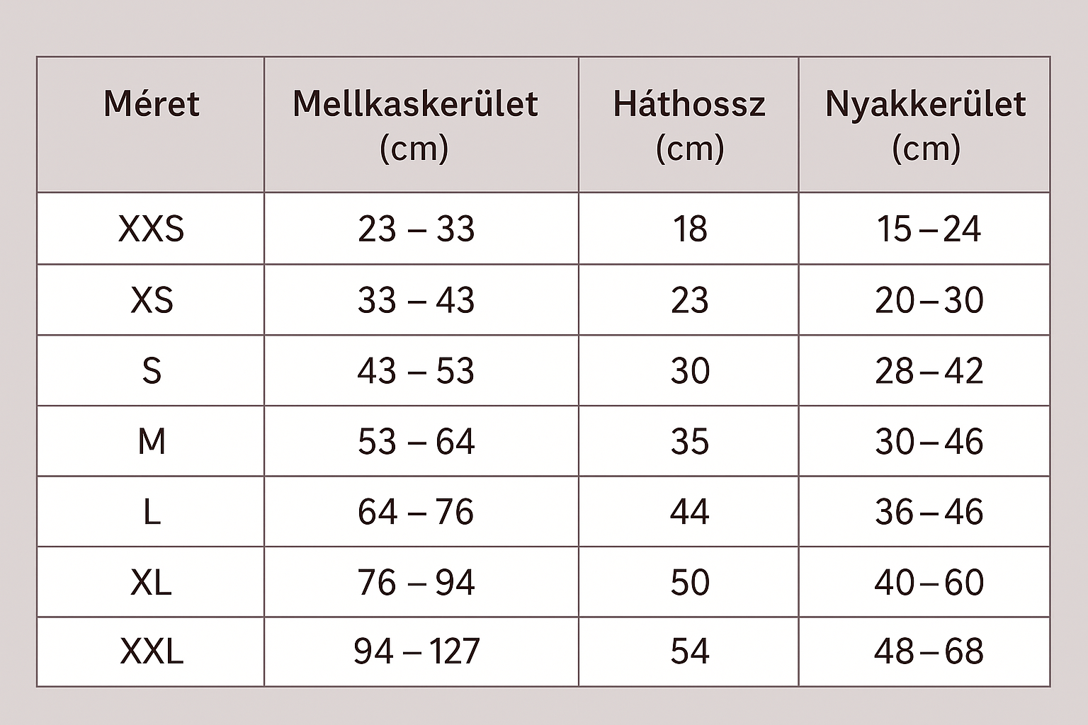 - Elérhető méretek: XXS, XS, S, M, L, XL, XXL